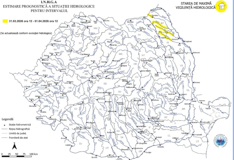 Potrivit specialiștilor, fenomenele hidrologice periculoase sunt așteptate să se manifeste cu o probabilitate și o intensitate mai ridicate mâine, în intervalul orar 06:00–12:00, în special pe unele râuri din bazinul hidrografic al Miletinului, afluent al Jijiei.