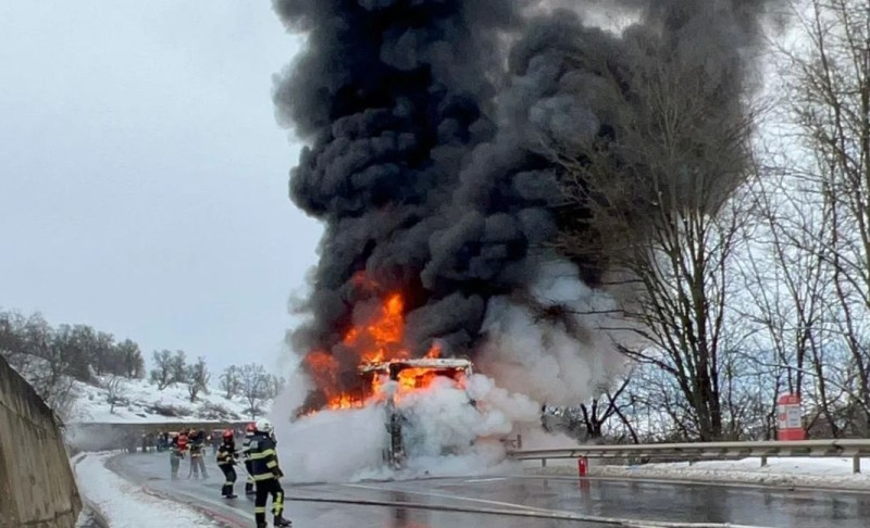 Intervenția pompierilor a dus la localizarea și, ulterior, stingerea incendiului, însă traficul rutier a fost blocat pe ambele sensuri.