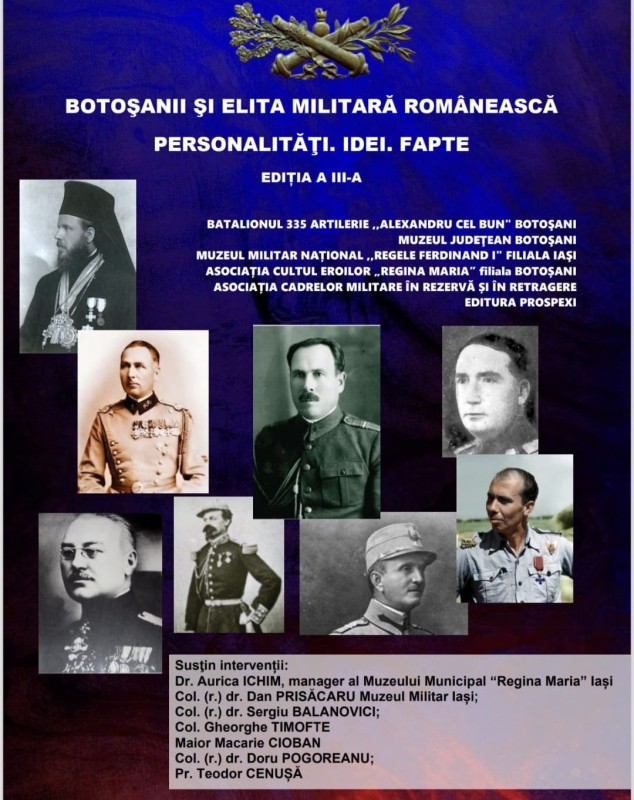 În data de 14 noiembrie, la Cercul Militar Botoșani a avut loc ediția a III-a a evenimentului „Botoșanii și elita militară românească – Personalități. Idei. Fapte”, o manifestare dedicată personalităților militare care au marcat istoria României și au avut legături cu județul Botoșani.