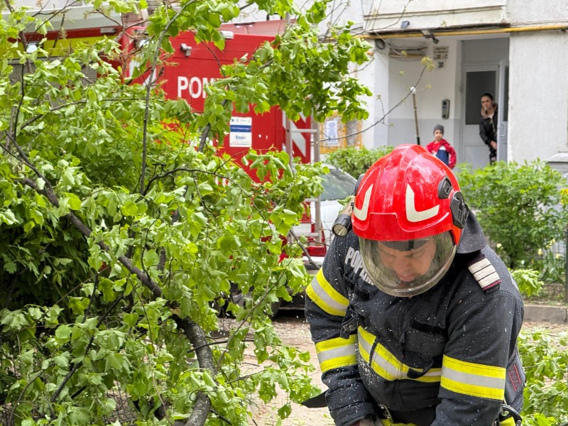 De asemenea, tot în municipiul Botoșani, pe strada General Gheorghe Avrămescu, pompierii au fost chemați întrucât doi arbori prezentau risc iminent de prăbușire peste mașinile parcate sau peste trecători.