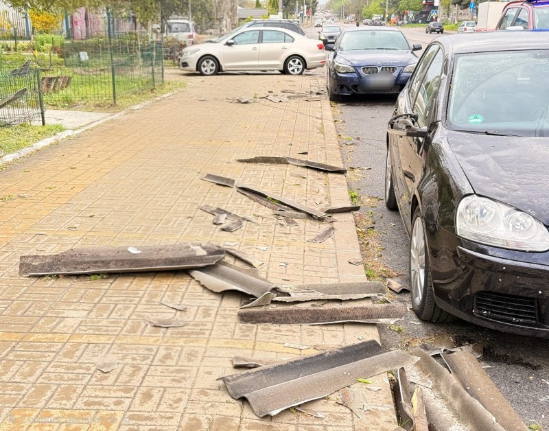 În municipiul Botoșani, pe Calea Națională, mai multe elemente de construcție desprinse din acoperișul unui bloc au căzut peste două autoturisme, pe partea carosabilă și pe trotuare.
