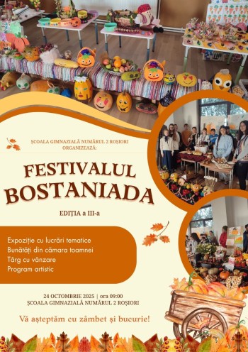Cu multă bucurie și voie bună! Așa se anunță a fi cea de-a treia ediție a Festivalului „Bostaniada”, organizat de Școala Gimnazială Nr. 2 din Roșiori pe 24 octombrie. Evenimen...