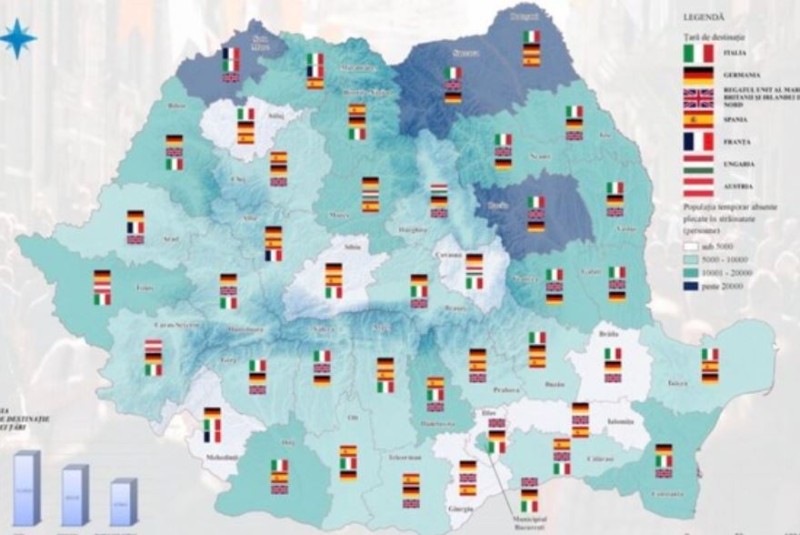 În Bihor, Mureș, Sibiu, Alba, dar și Arad și Timiș, județe din Banat, s-a plecat cel mai mult în Germania. În Harghita a fost preferată Ungaria, în timp ce în Covasna oamenii au plecat mai des în Germania, apoi în Ungaria și Italia.