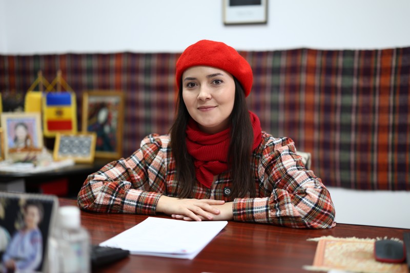 (Foto: Iustina Irimia-Cenușă în biroul managerului Centrului Creației)