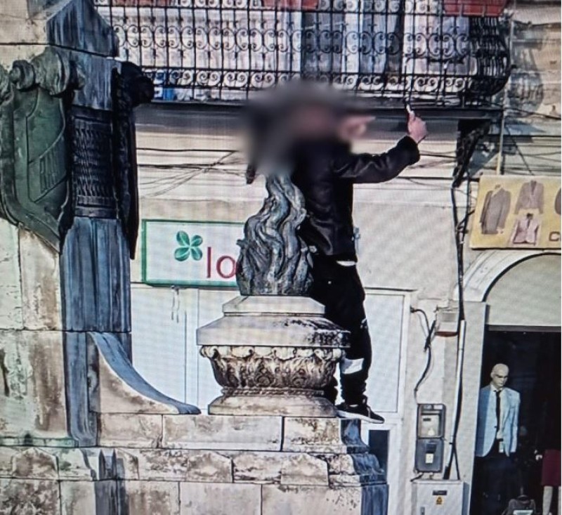 Polițiștii locali din cadrul Serviciului Ordine și liniște publică au fost direcționați în Centrul Istoric de către Serviciul Dispecerat, unde o persoană de sex masculin era urcată pe monumentul aflat în Piața 1 Decembrie.