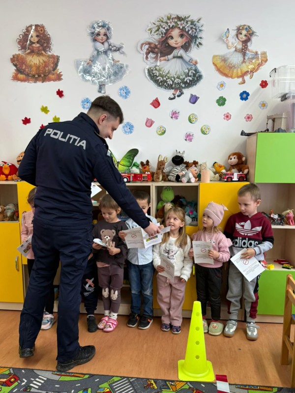 Polițiștii din Nicșeni au desfășurat o activitate informativ-preventivă cu școlarii și preșcolarii din cadrul Școlii Gimnaziale „Mihai Constantineanu” Dorobanți și Grădiniței Dacia.