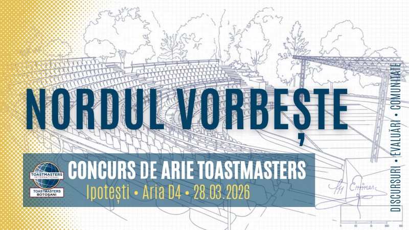 În acest weekend Botoșanii vor găzdui un megaconcurs de public speaking. Peste 100 de iubitori ai exersării emoțiilor, elocvenței și spontaneității se vor delecta cu momentele pregătite de Toastmasters Botoșani, organizatorul concursului regional din această primăvară ce se va derula în zilele de 28 și 29 martie.