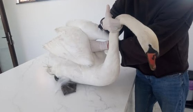 Este cel mai mare exemplar de lebadă, accidentat, pentru care se depun eforturi pentru a atinge starea fiziologică normală.