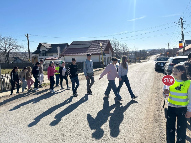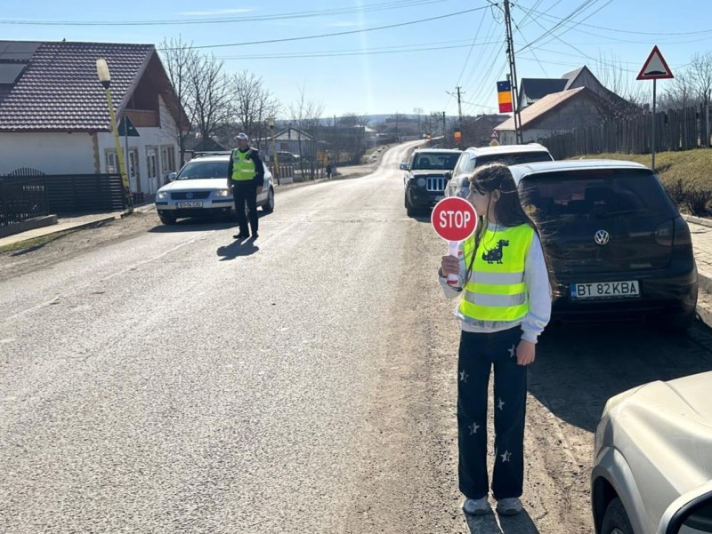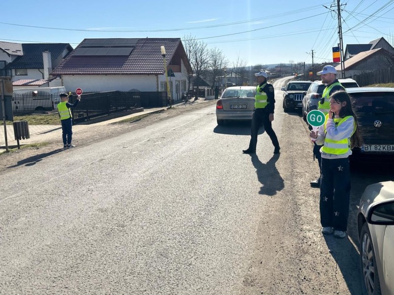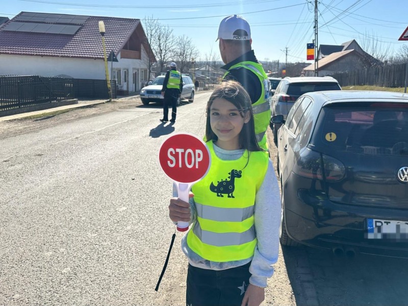 Echipați cu veste reflectorizante și indicatoare de semnalizare, cei șase elevi ai patrulei școlare, sub îndrumarea unui cadru didactic și sub supravegherea polițiștilor au dirijat circulația și au îndrumat pietonii să traverseze în siguranță.
