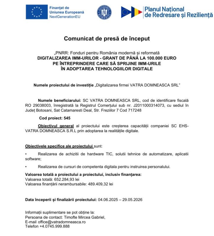 (A) PNRR: Fonduri pentru România modernă și reformată - DIGITALIZAREA IMM-URILOR