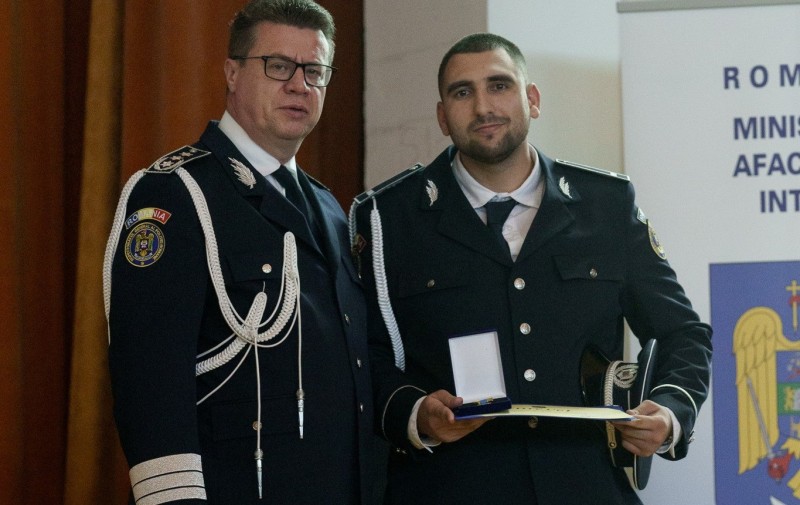 Polițistul de 21 de ani, care, pe 13 septembrie, aflat în misiune la un festival din Săveni, a intervenit imediat când a observat o mamă disperată și un băiețel de 3 ani rănit la cap.