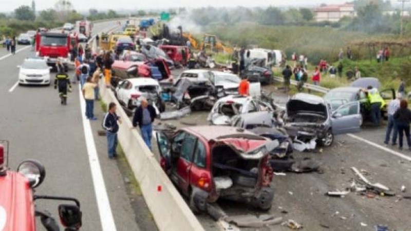 Cinci persoane si-au pierdut viata, iar 35 de vehicule, inclusive trei camioane au fost implicate in accidentul provocat in nordul Greciei de roman.