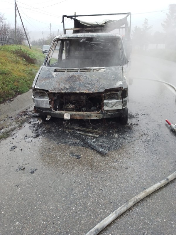 Aceștia au constatat faptul că ardea partea din față a autoutilitarei și au acționat rapid astfel încât flăcările să nu se extindă.