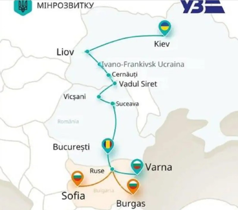Ruta propusă de autoritățile din Ucraina, cele care ar urma să asigure compunerea trenului, este Kiev – Liov – Cernăuți – Suceava – București – Varna.