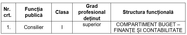 În conformitate cu prevederile art. VII alin(3) lit”b” din OUG nr. 156/2024 și art. VII alin. (7) din OUG 121/2023 pentru modificarea și completarea Codului administrativ, cu respectarea prevederilor OUG nr. 156/2024, OUG nr. 121/2023 și ale Legii nr. 296/2023, Direcția de Sănătate Publică Botoșani, organizează recrutarea prin transfer la cerere pentru ocuparea unei funcţii publice de execuţie: