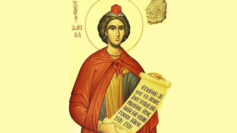 Prorocul Daniel face parte dintre profeţii mari ai Vechiului Testament, el arătând precis timpul când avea să Se nască Mântuitorul lumii, cu aproape 600 de ani înainte de venirea Acestuia. Era din neamul lui David şi a fost dus în robie în Babilon, împreună cu alţi tineri din neamul său, din porunca lui Nabucodonosor al 2-lea (605-562 î.Hr.). Pentru faptele lor bune, Daniel împreună cu Anania, Azaria şi Misail au fost luaţi la curtea lui Nabucodonosor şi au fost puşi în înalte dregătorii. La curtea împăratului, Prorocul Daniel şi-a dovedit înţelepciunea pe care o avea de la Domnul: a salvat de la moarte pe nevinovata Susana, care era defăimată pe nedrept de doi bătrâni desfrânaţi; a descoperit şi tălmăcit împăratului un vis cu o statuie alcătuită din mai multe părţi, care fiind lovită de o piatră mică s-a prăbuşit, arătând că piatra aceea preînchipuia pe Mesia (Daniel 2, 31-47). Sfântul Proroc Daniel a fost cinstit şi de alţi împăraţi din Babilon precum Belşaţar, Darius I şi Cirus al 2-lea cel Mare. În timpul lui Cirus a avut visul celor şapte săptămâni de ani ce despart vremea sa de vremea venirii lui Mesia (Daniel 9, 2-27). Astfel, a vestit popoarelor păgâne, cu aproape 600 de ani mai înainte, timpul venirii lui Mesia. Profetul Daniel se referă la împărăţia dreptăţii şi a păcii adusă de Fiul lui Dumnezeu „Am privit în vedenia de noapte, şi, iată pe norii cerului venea Cineva ca Fiul Omului şi El a înaintat până la Cel vechi de zile, şi a fost dus în faţa Lui. Şi Lui I s-a dat stăpânirea, slava şi împărăţia, şi toate popoarele, neamurile şi limbile Îi slujeau Lui. Stăpânirea Lui este veşnică, stăpânire care nu va trece, iar împărăţia Lui nu va fi nimicită niciodată.” (Daniel 7, 13-14).