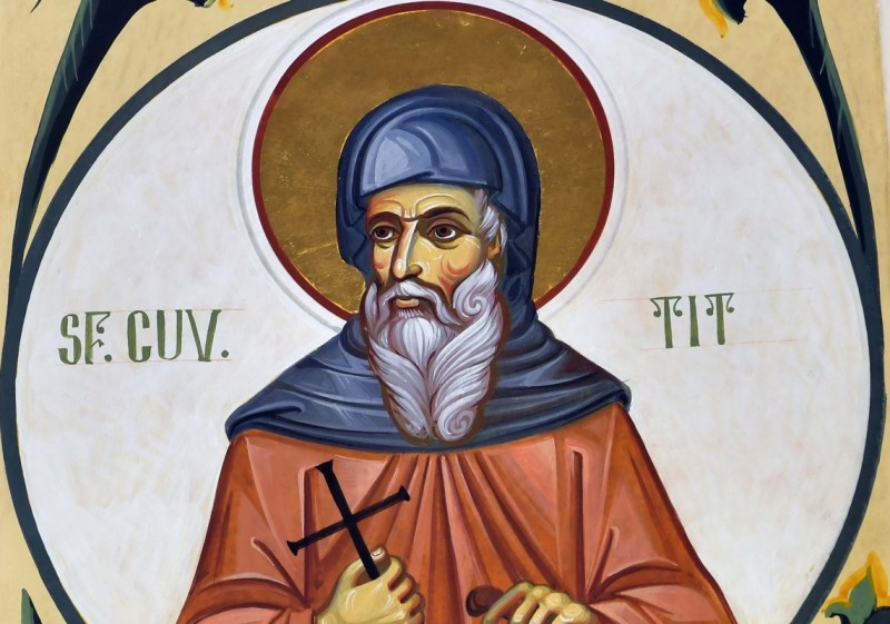Sfântul Cuvios Tit a trăit pe vremea în care Biserica lui Hristos se confrunta cu erezia iconoclastă. Iubind din tinereţe pe Hristos, fericitul Tit s-a lepădat de lume şi a îmbrăţişat viaţa monahală, trăind într-o mănăstire cu viaţă de obşte. Întreaga sa viaţă s-a păzit curat cu trupul şi cu sufletul, ca un înger al Domnului.