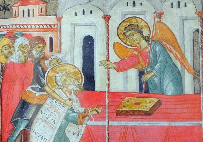 Sfântul Proroc Zaharia era preot la Templul din Ierusalim, pe când la Roma era împărat Cezar Augustus (63 î.Hr. - 14 d.Hr.), iar în Ţara Sfântă domnea Irod cel Mare. Zaharia preotul avea o soţie ce se numea Elisabeta, una dintre fiicele lui Aaron. În capitolul întâi din Sfânta Evanghelie după Luca ni se spune că „erau amândoi drepţi înaintea lui Dumnezeu, umblând fără prihană în toate poruncile şi rânduielile Domnului. Dar nu aveau nici un copil, deoarece Elisabeta era stearpă şi amândoi erau înaintaţi în zilele lor” (Luca 1, 6-7). Intrând oarecând Zaharia în templu să cădească, după rânduială, a văzut pe îngerul lui Dumnezeu stând de-a dreapta altarului tămâierii, vestindu-i că Elisabeta va naşte la bătrâneţe un fiu, căruia îi vor pune numele Ioan. „Şi bucurie şi veselie vei avea, şi de naşterea lui mulţi se vor bucura. Căci va fi mare înaintea Domnului; nu va bea vin, nici altă băutură ameţitoare şi încă din pântecele mamei sale se va umple de Duhul Sfânt” (Luca 1, 14-15). La şase luni după naşterea Sfântului Proroc Ioan s-a auzit că Irod, regele iudeilor, voia să-i ucidă pe toţi pruncii din Betleem şi din împrejurimi. Tradiţia ne spune că Elisabeta s-a ascuns atunci împreună cu copilul într-o peşteră, de cealaltă parte a Iordanului, iar când ostaşii au căutat pruncul, ei nu l-au găsit. Deci, a poruncit Irod ca în locul copilului să fie omorât tatăl acestuia, Prorocul Zaharia. Şi ducându-se ei la templu, l-au înjunghiat pe bătrânul preot între templu şi altar, stropind cu sângele său altarul Domnului. Aşa s-a mutat din viaţa aceasta Sfântul Proroc Zaharia, iar pruncul Ioan, scăpând de urgie, creştea şi se întărea cu duhul, rămânând în pustie până la ceasul arătării sale în Israel (Luca 1, 80).