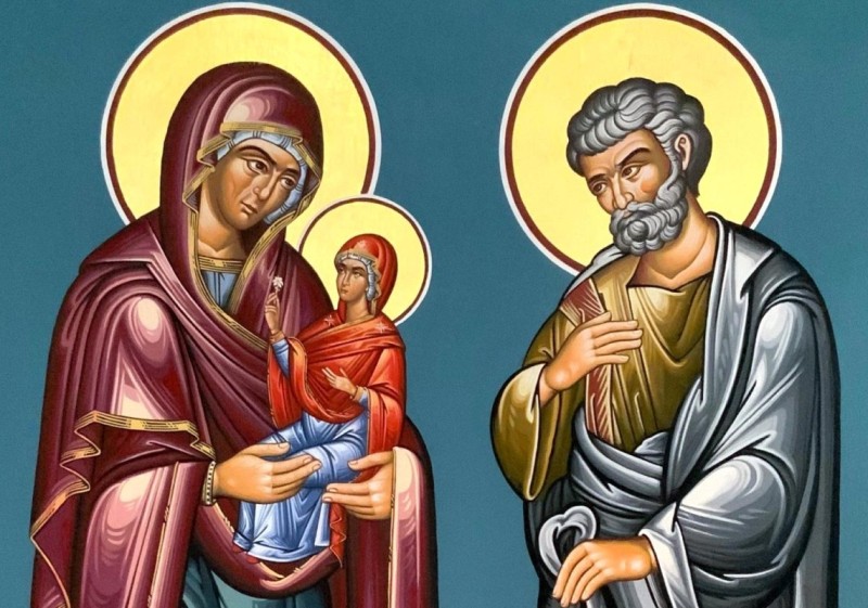 Sfinţii Părinți Ioachim şi Ana au primit-o pe Maica Domnului la adânci bătrâneţi, în urma rugăciunilor neîncetate făcute cu multe lacrimi şi cu post. Au crescut-o în frică de Dumnezeu până la vârsta de 3 ani, când a fost încredinţată Templului din Ierusalim, unde a trăit 12 ani. Aşadar, Sfinţii şi Drepţii dumnezeieşti Părinţi Ioachim şi Ana au fost bunicii Domnului Hristos. Aceştia erau drepţi înaintea lui Dumnezeu şi, fiind înstăriţi, la fiecare sărbătoare, luau două părţi din averea lor, o parte o împărţeau săracilor, iar cealaltă parte o dădeau lui Dumnezeu. Ducându-se oarecând Ioachim cu daruri la Ierusalim cu prilejul unui praznic mare, un iudeu l-a ocărât zicându-i: „De ce aduci darul înaintea mea? Oare nu ştii că nevrednic eşti să aduci cu noi daruri, de vreme ce nu ai lăsat urmaşi în Israel?” Şi a plecat Ioachim foarte mâhnit şi ruşinat de la praznicul acela şi de întristare nu s-a mai întors o vreme acasă, ci a plecat în pustie să se roage timp de 40 de zile. Asemenea şi Ana, în casa şi în grădina sa se ruga Domnului cu lacrimi ca să-i dea rod pântecelui. Şi i-a auzit pe dânşii Dumnezeu şi le-a dăruit-o pe Fecioara Maria, cea din care avea să Se nască Mântuitorul lumii, Iisus Hristos Domnul.