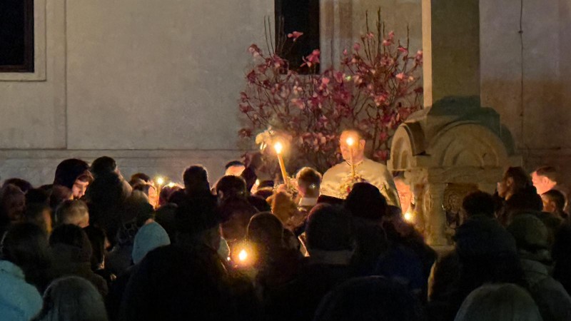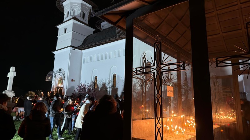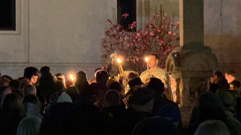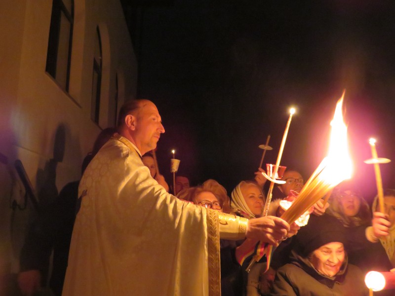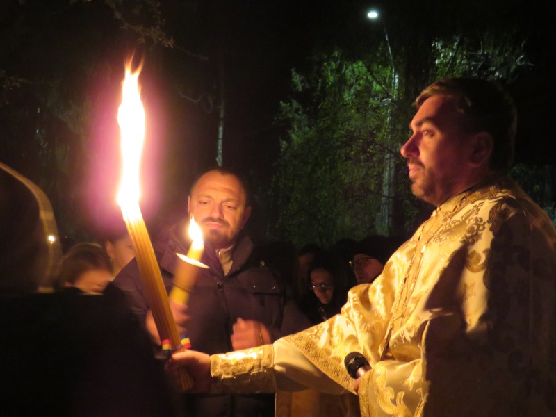 După câteva nopți geroase de aprilie, noaptea de Înviere a îmblânzit Cerul, câțiva stropi timizi de ploaie însoțind creștinii pe drumul către biserică pentru a primi Lumina.