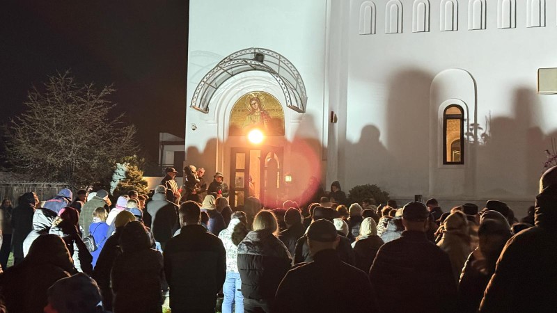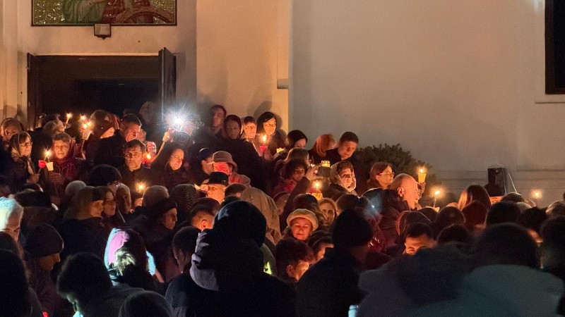 După ce preotul a strigat ”Veniți de primiți Lumina!”, credincioșii au cântat ”Hristos a Înviat”, apoi au asistat la Sfânta Liturghie.