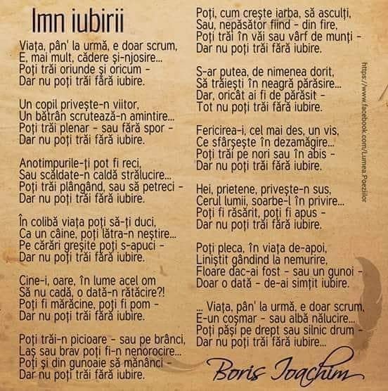 A fost poetul care, chiar dacă spunea că vede partea goală a paharului, reușea să lumineze tristețea, să îmbuneze deznădejdea, să purifice cântul de jale. Prea puțin cunoscut în viață, aproape ignorat în moarte, poetul Boris Ioachim își parcurge nemurirea în versurile scrise, cântate, șoptite de cei care l-au cunoscut, l-au iubit, l-au apreciat.