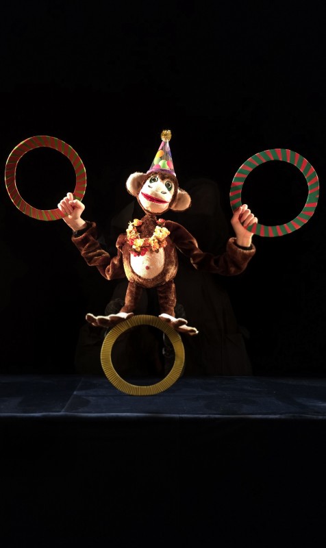 „Hoţomanii acrobaţi” este un spectacol nonverbal interactiv cu actori și păpuși care îmbină arta mânuirii păpușilor cu arta circului și pantomima.