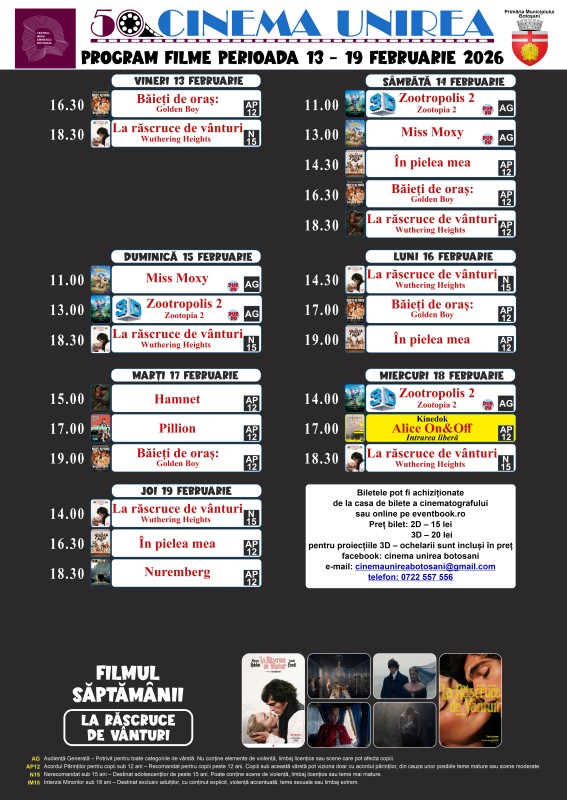 Filmul ”La răscruce de vânturi”, o nouă ecranizare îndrăzneață a romanului cu același nume scris de Emily Brontë, poate fi văzut la Cinema Unirea Botoșani (vezi programul mai jos).