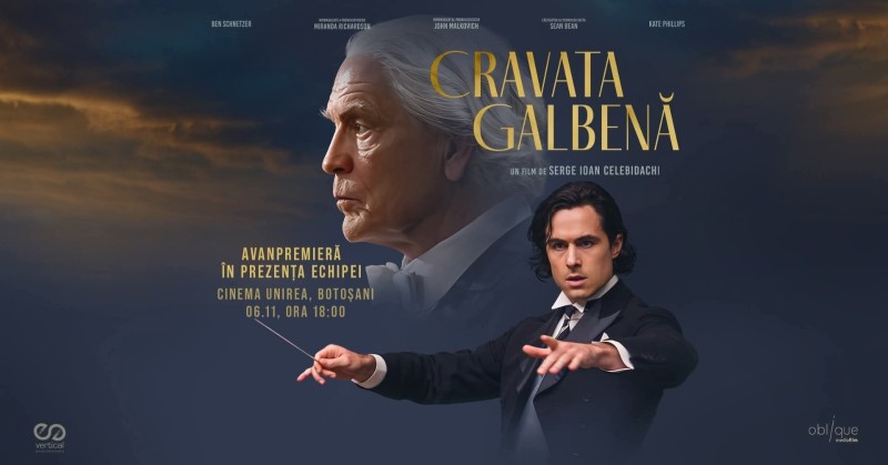 ”Cravata galbenă” va avea parte de covor roșu la Cinema Unirea Botoșani, publicul având ocazia, după proiecție, să discute cu regizorul Serge Ioan Celebidachi și cu producătoarea Cristina Dobrițoiu.