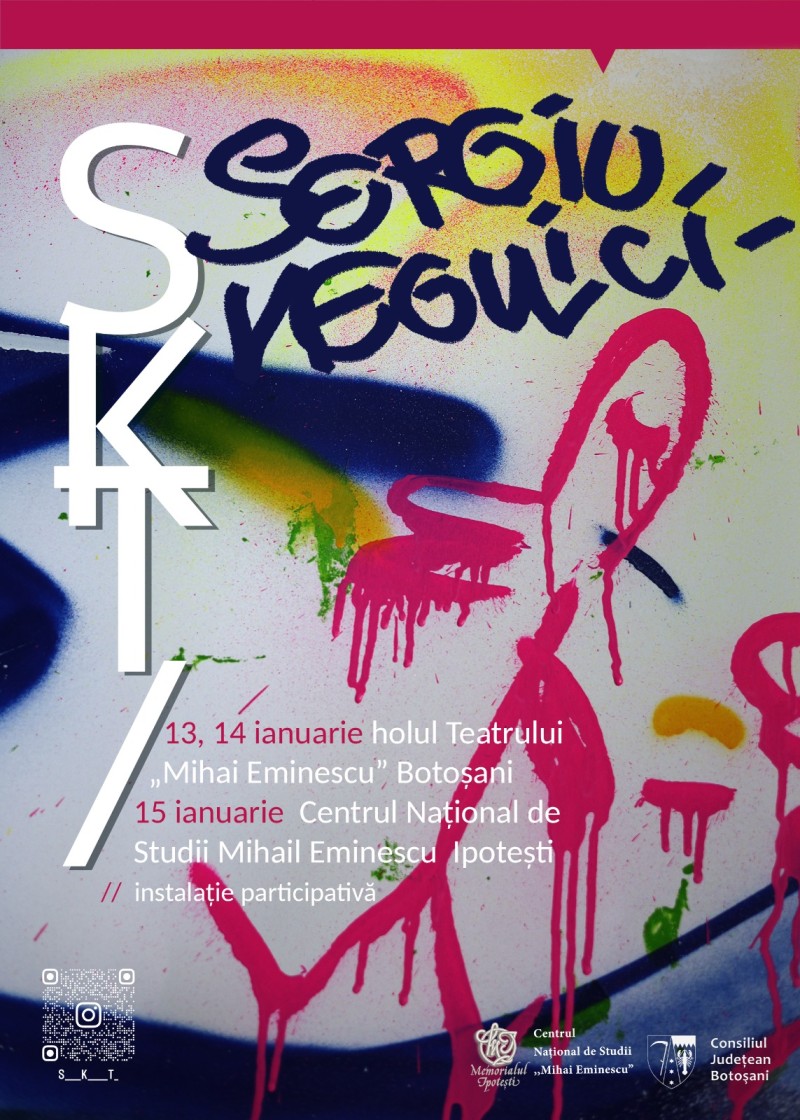 Memorialul Ipotești – Centrul Național de Studii „Mihai Eminescu” invită, în cadrul Zilelor Eminescu, la o expoziție interactivă. Artistul Sergiu Negulici va transforma holul de la etaj al Teatrului „Mihai Eminescu” din Botoșani într-un spațiu de traversare și tensiune, situat la granița dintre realități aparent incompatibile.