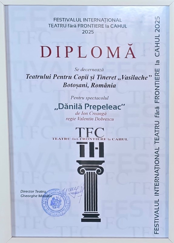 Teatrul pentru Copii și Tineret „Vasilache” a participat, în perioada 15-17 octombrie 2025, la cea de-a doua ediţie a Festivalului Internațional TFC 2025 - Teatrul fără Frontiere la Cahul, organizat de Teatrul Republican Muzical Dramatic „B.P. Hasdeu” din Cahul!