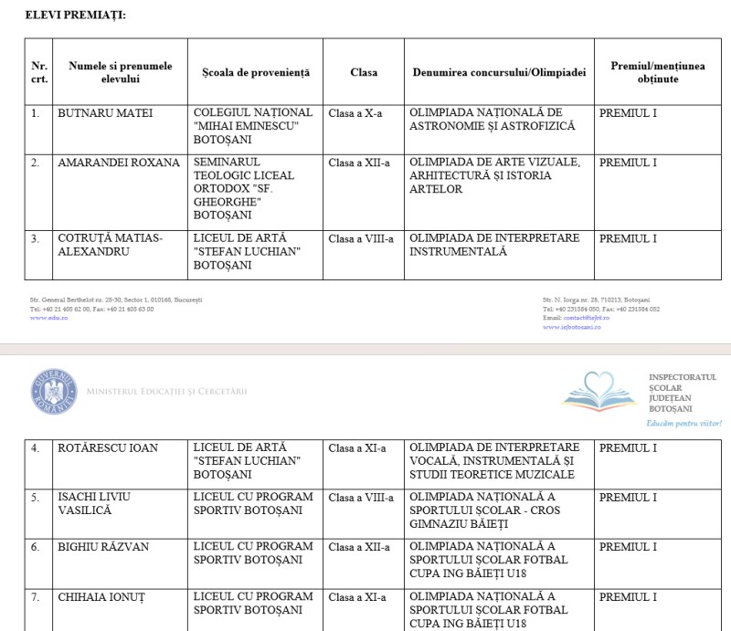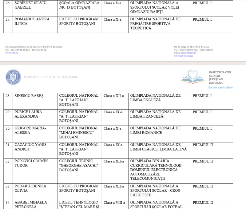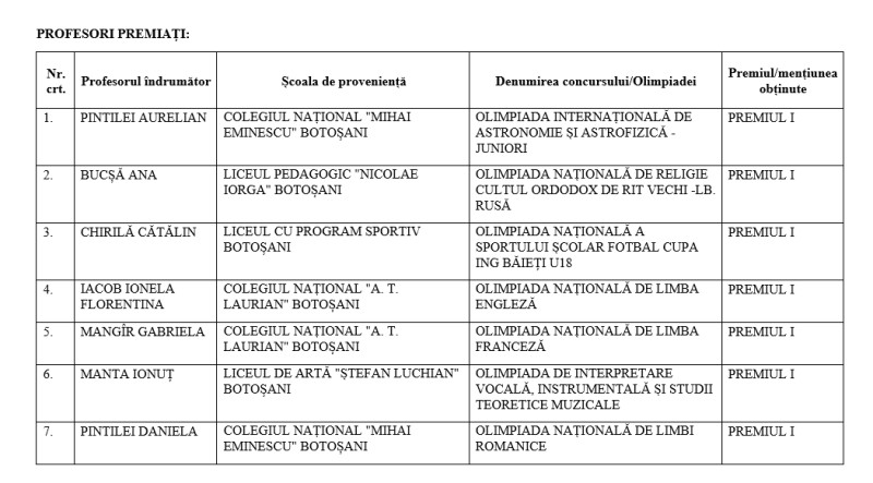 Evenimentul a fost deschis de către prof. Bogdan Suruciuc, inspector școlar general al Inspectoratului Școlar Județean Botoșani, care le-a adresat felicitări și gânduri de recunoștință elevilor olimpici, dar și profesorilor care au contribuit la această frumoasă reușită.