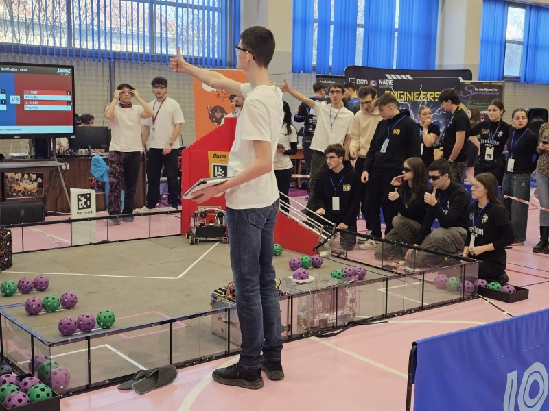 Evenimentul din 17 ianuarie a adus laolaltă echipe pasionate de robotică, competiție și inovație, într-o zi plină de meciuri, colaborare și fair-play, atmosfera fiind una încărcată de energie pozitivă și de entuziasm.