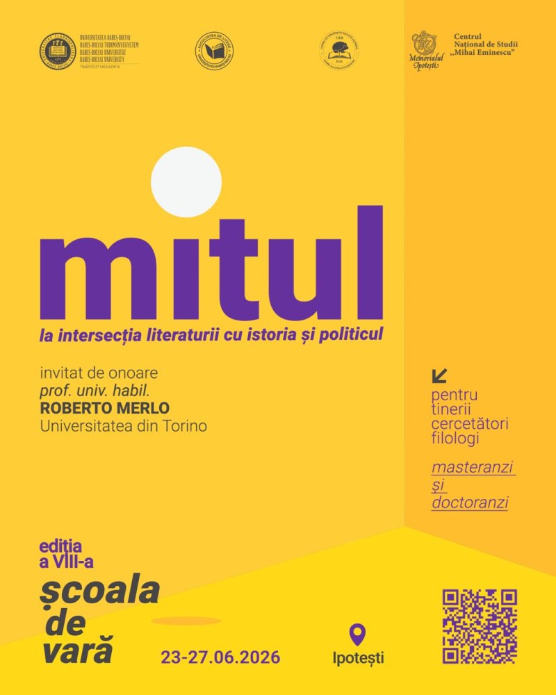 Universitatea Babeș-Bolyai (Facultatea de Litere, Departamentul de literatură română și teoria literaturii, Centrul de Cercetare în Filologie Modernă) și Memorialul Ipotești – Centrul Național de Studii Mihai Eminescu organizează, în perioada 23–27 iunie 2026, cea de-a VIII-a ediție a Școlii de vară, dedicată tinerilor cercetători filologi – masteranzi și doctoranzi din întreaga țară.