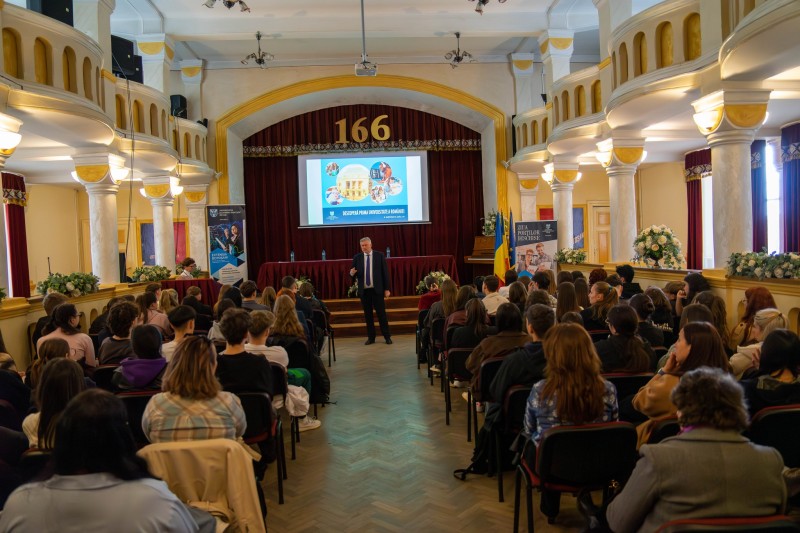 Peste 200 de elevi, profesori, reprezentanți ai administrației și ai mediului de afaceri au participat pe 22 aprilie la evenimentul „Ziua Porților Deschise la Extensia UAIC din Botoșani”, organizat în Aula Magna a Colegiului Național „A.T. Laurian”.