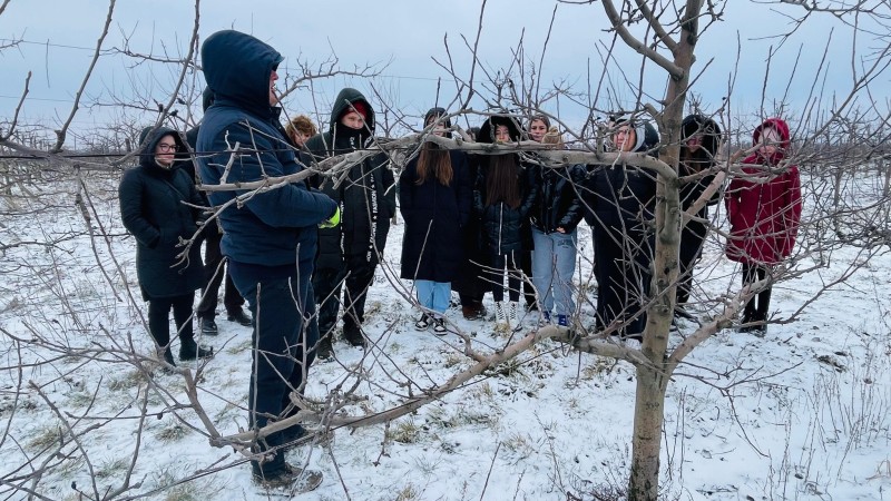 În prima parte a activității, elevii au observat direct lucrările specifice de întreținere a pomilor fructiferi. Reprezentanții fermei au prezentat procesul de curățare (toaletare) a copacilor și importanța tăierilor de rodire pentru menținerea sănătății pomilor, stimularea producției de fructe și asigurarea unei dezvoltări armonioase.
