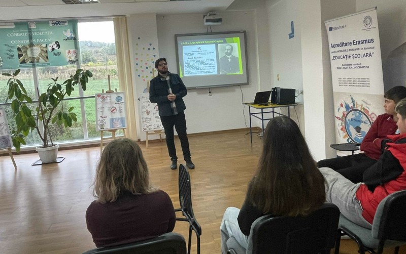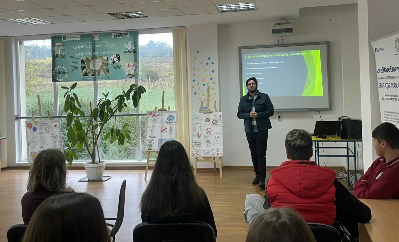 Activitatea a inclus o prezentare interactivă susținută de profesorul de istorie, în care au fost explicate cauzele, desfășurarea și consecințele Holocaustului în Europa și în România.