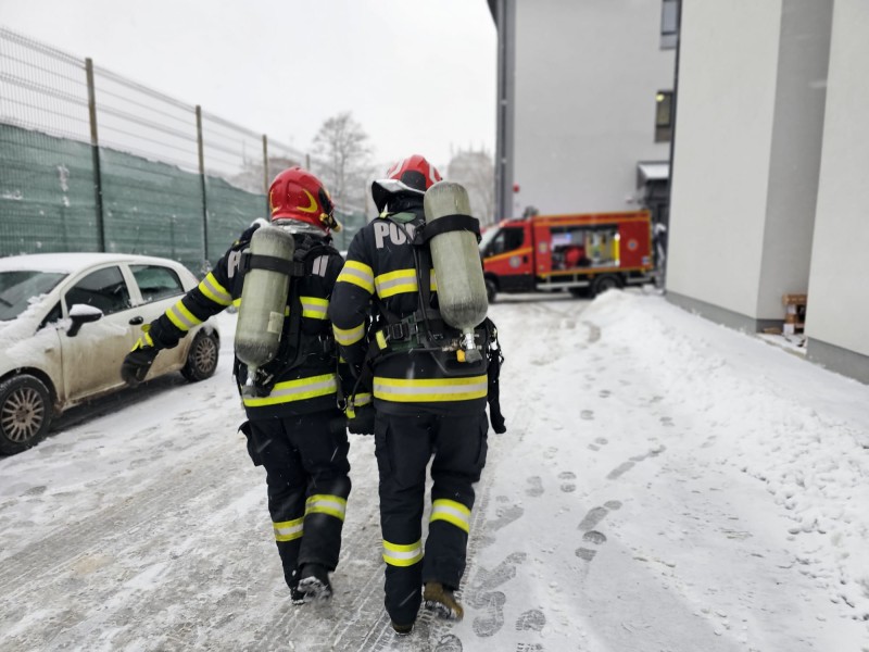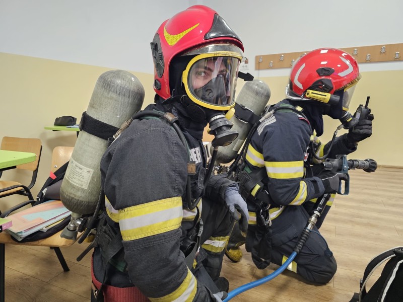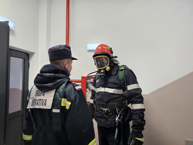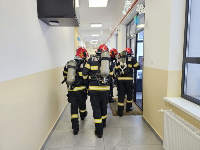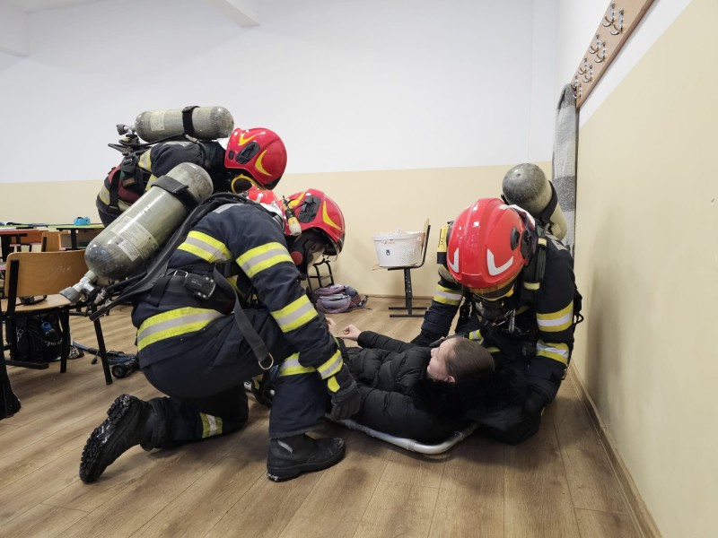 Pentru ca exercițiul să fie cât mai aproape de realitate, a fost simulată salvarea a trei elevi din două săli de clasă.