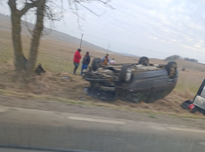 O mașină condusă de o femeie de 44 de ani a ajuns cu roțile în sus în afara părții carosabile.