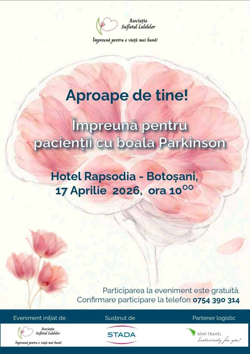 Astfel, pe 17 aprilie, de la ora 10:00 în Sala „Mihai Eminescu” a Hotelului Rapsodia va avea loc un eveniment intitulat „Aproape de tine! Împreună pentru pacienții cu boala Parkinson!”, inițiat de Asociația Bolnavilor de Parkinson și a altor afecțiuni neurologice degenerative „Sufletul lalelelor”.