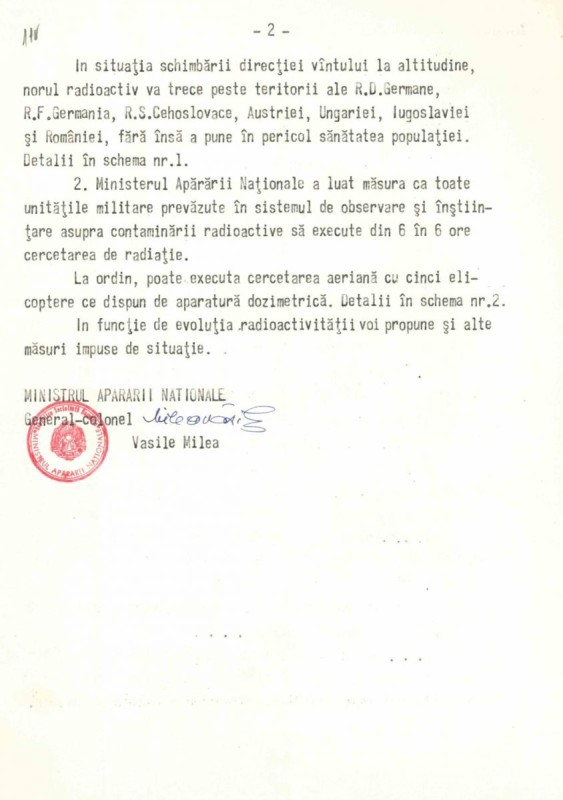 Ceaușescu vrea să știe dacă România poate gestiona problema în zonele în care este depășit nivelul de radioactivitate sau dacă se impune solicitarea ajutorului de la sovietici, ”deoarece cunosc mai bine, au mai avut accidente”.