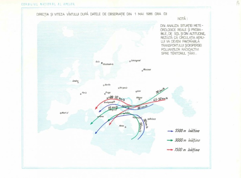 Nicolae Ceaușescu este cel care începe ședința, motivând și necesitatea întrunirii, la cinci zile de la explozia reactorului de la Cernobîl: VÂNTUL: ”Tovarăși, am convocat această ședință în legătură cu avaria de la Centrala atomoelectrică de la Cernobîl, de la sovietici. Începând din noaptea aceasta, s-a creat o situație proastă pentru țara noastră. Prin schimbarea direcției vântului, au crescut mult, în diferite zone, radiațiile”.