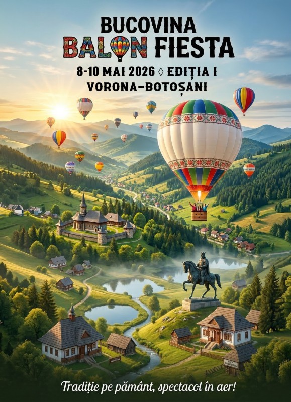 În perioada 8-10 mai 2026, la Vorona, județul Botoșani, va avea loc ”Bucovina Balon Fiesta” prima ediție a unui festival care va transforma orizontul într-o explozie de culori.