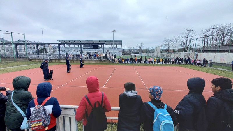 În continuare, elevii au putut vedea autospecialele folosite la misiuni și au urmărit exercițiile demonstrative de autoapărare, precum și cele de disciplină și intervenție canină.