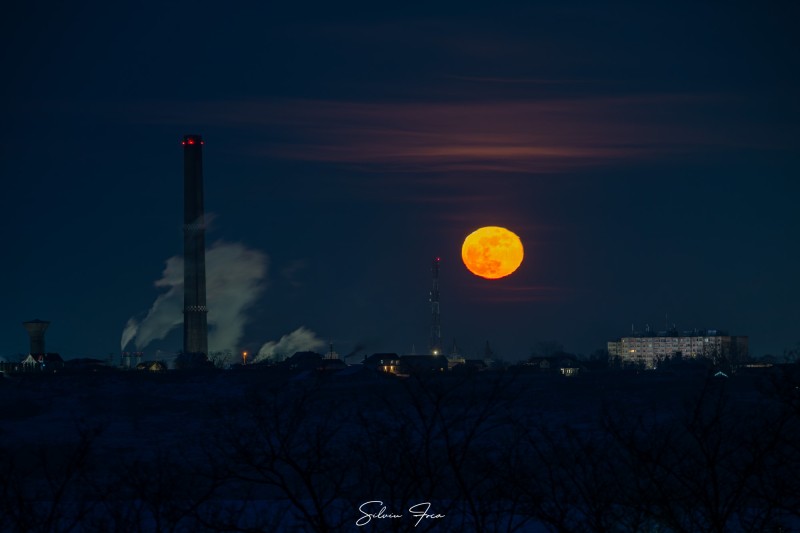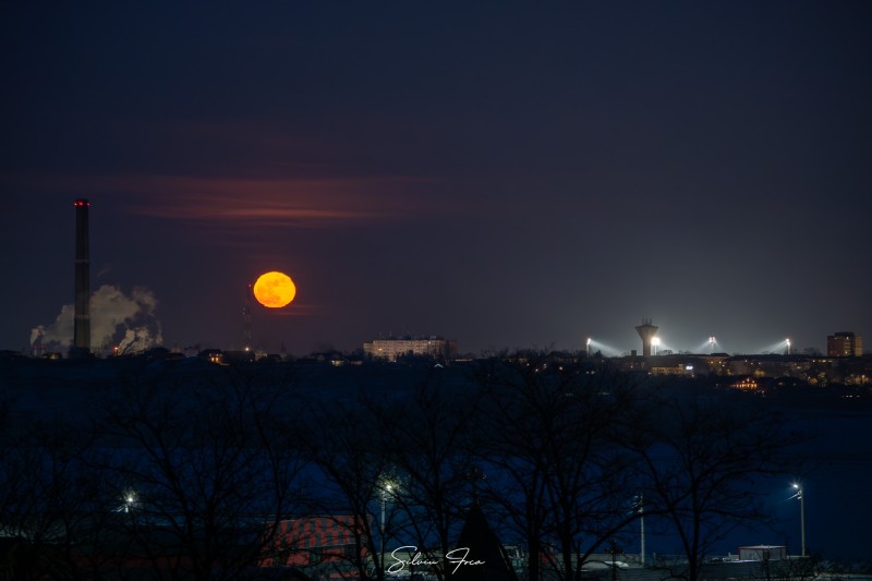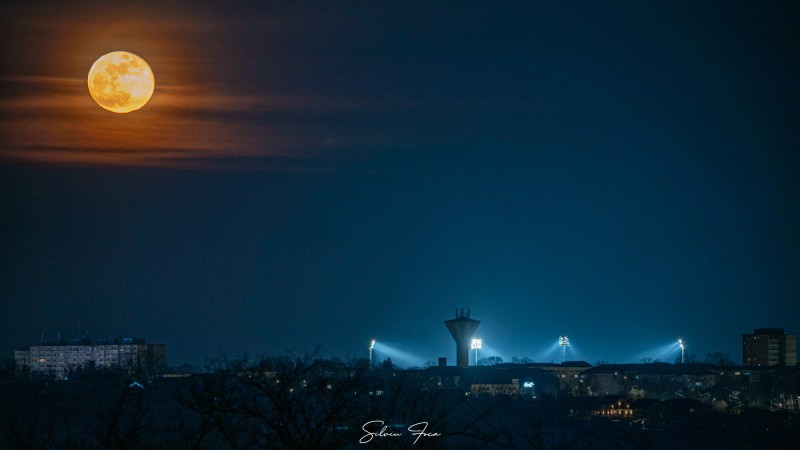 "Luna zăpezii, cum este numită luna plină din februarie, chiar a venit cu zăpadă și, cel mai important, cu un ger năpraznic. La -10 grade mi-au înghețat mâinile trăgând câteva cadre cu luna plină deasupra Botoșaniului chiar în timpul partidei de fotbal cu Oțelul Galați. Unii s-au dus la meci, alții la spectacol. Spectacolul naturii”, a transmis Silviu Foca, autorul acestor superbe imagini din Botoșani.