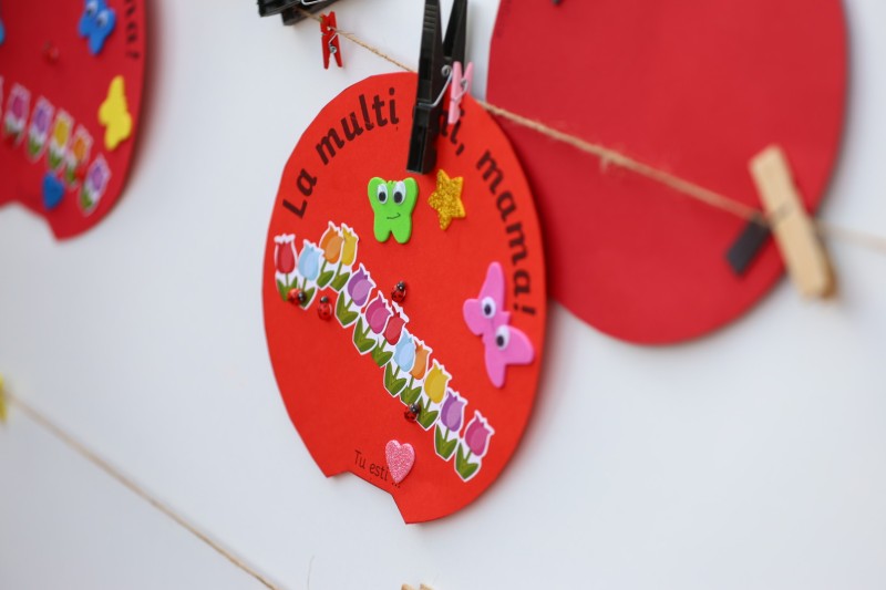 În curtea celor două unități au fost organizate expoziții cu lucrări de-ale copiilor, care au fost îndrumați de doamnele educatoare. Copiii au realizat desene, colaje, picturi și creații hand-made chiar, prin care și-au exprimat dragostea față de mamă.