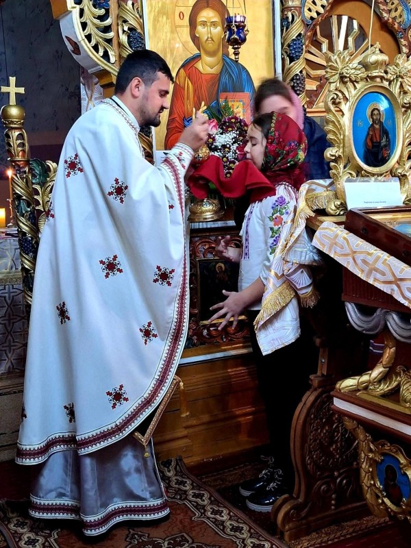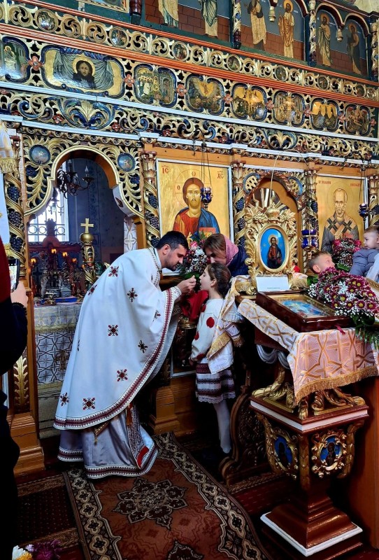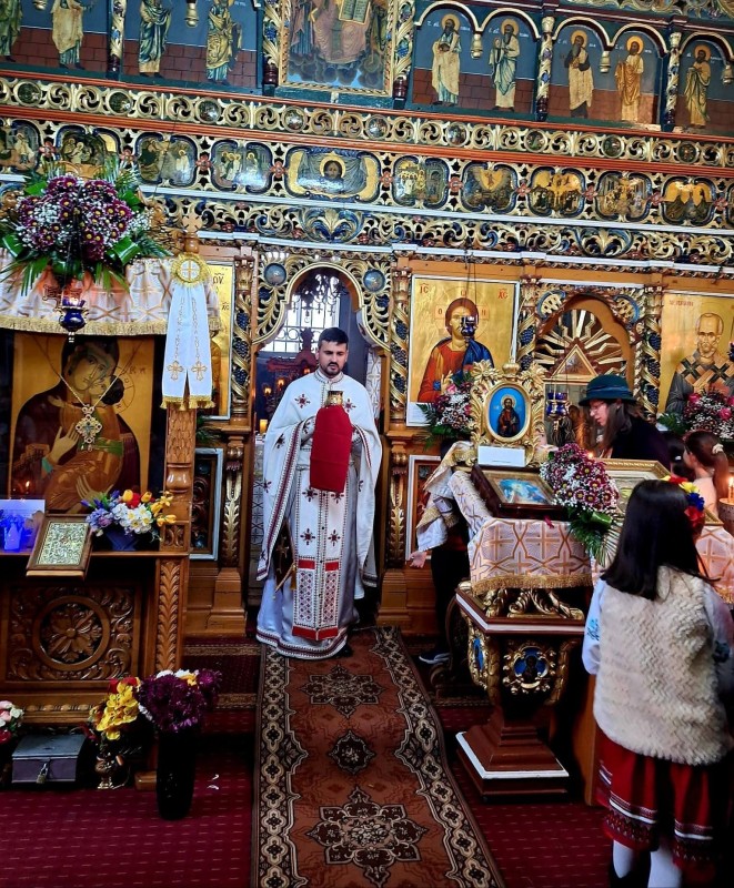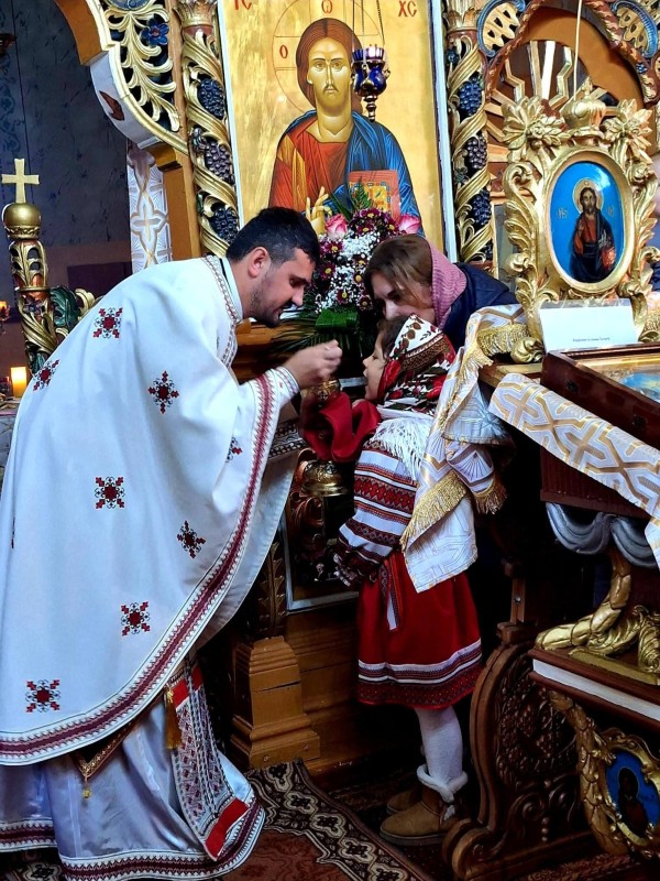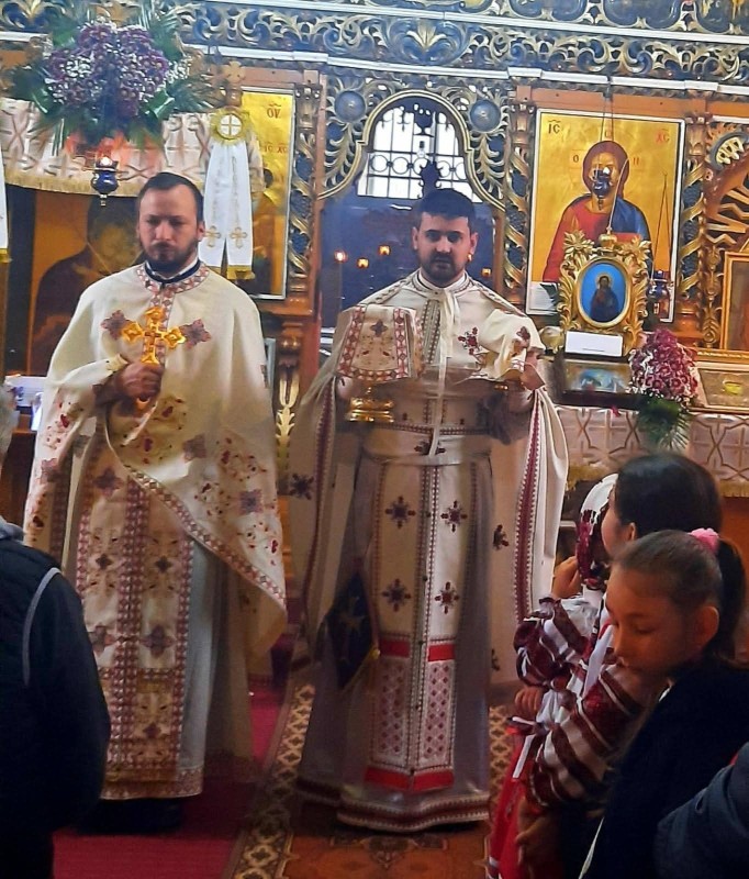 Sub îndrumarea părintelui, Sfânta Liturghie a adunat credincioși de toate vârstele, uniți într-un moment de profundă trăire spirituală. Clipa cea mai așteptată a fost apropierea copiilor de Sfântul Potir. Cu sfială și cu obrajii îmbujorați de emoție, cei mici s-au împărtășit, aducând în biserică o lumină aparte, ca un ecou al inocenței lor. După slujbă, vocile lor s-au transformat în colinde calde, care au răsunat ca o binevestire a sărbătorilor ce se apropie. Fiecare cântec a fost un dar, o mărturisire de credință și de bucurie împărtășită cu întreaga comunitate.