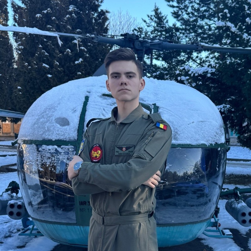 Mai exact, student caporal Tudor Colbea studiază în cadrul Facultății de Management Aeronautic, specializarea Aviaţie Piloţi.