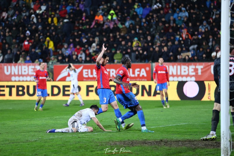 Min. 37: Bucuria lui Marius Croitoru e scurtă. Penalty pentru FCSB! Juri Cisotti este faultat în careu și arbitrul dictează lovitură de la 11 metri