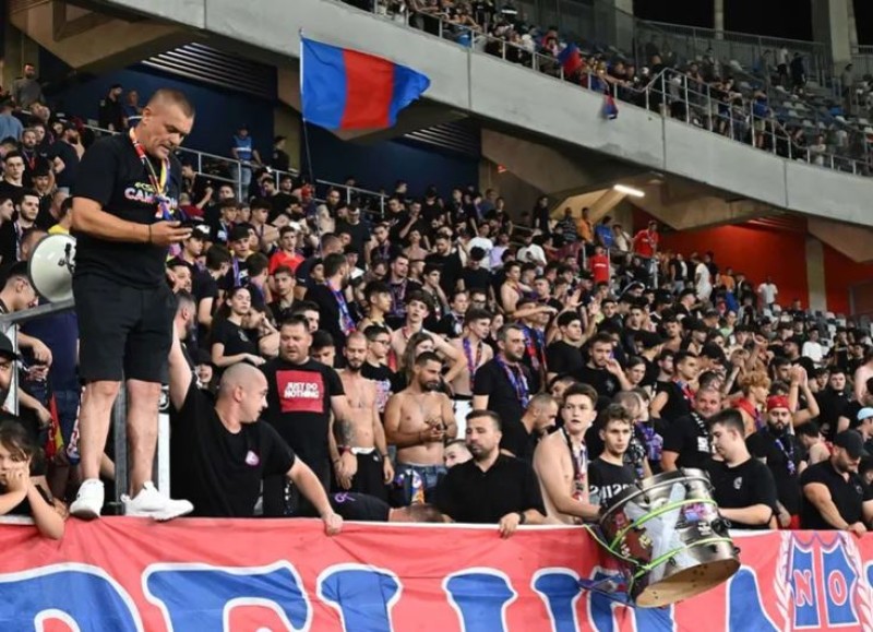 „Patru-n weekend, patru joi / Mai jucaţi sau intrăm în noi?”. Acest banner a fost afișat înainte de startul meciului FCSB - Fenerbahce, exact în locul unde stau cei din galeria FCSB: Peluza Nord.